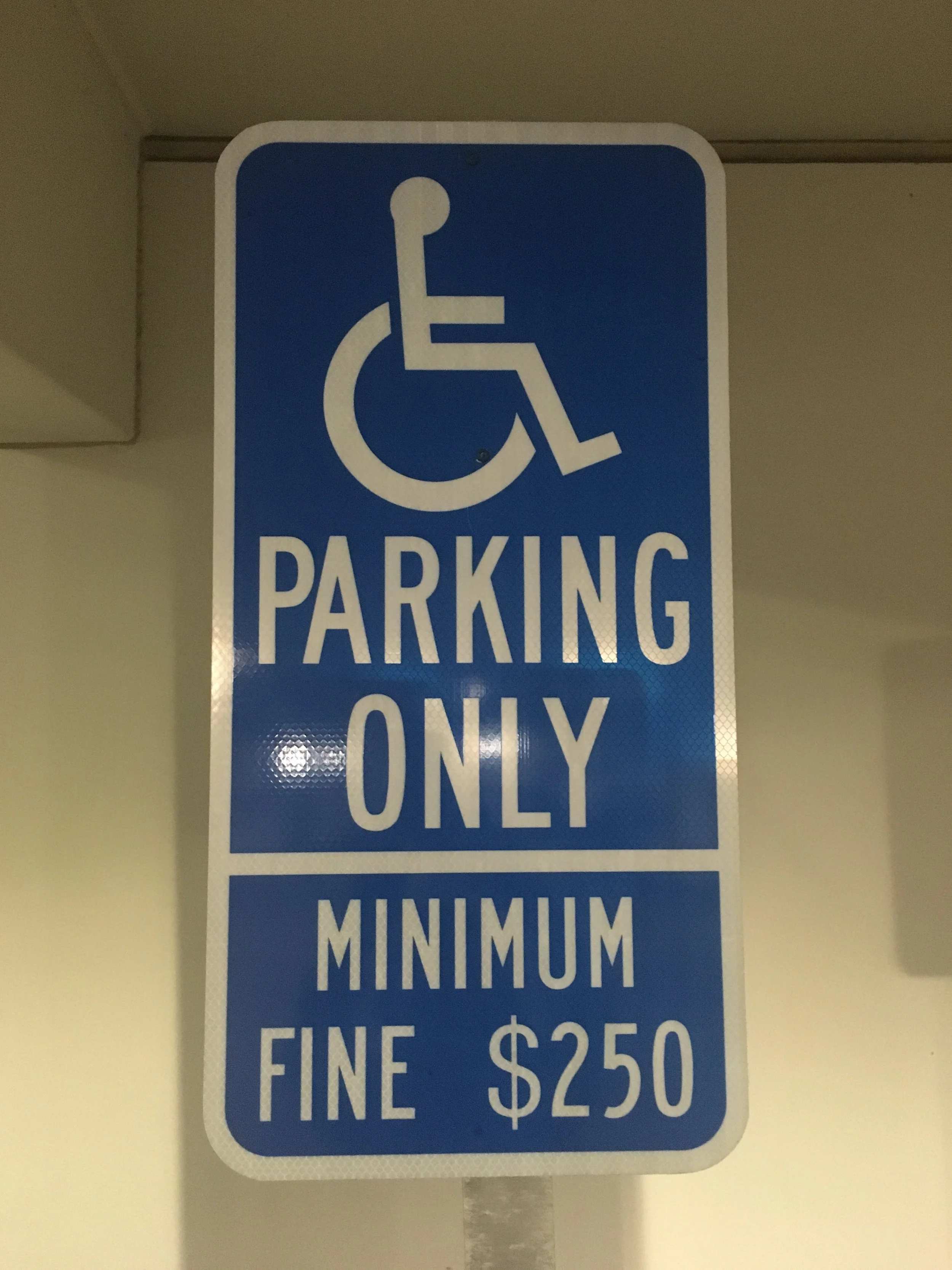 Unless of course you do have a handicapped parking pass, don’t even think about parking there. Even if it’s just for a few minutes, the fine starts at $250 = not worth it!