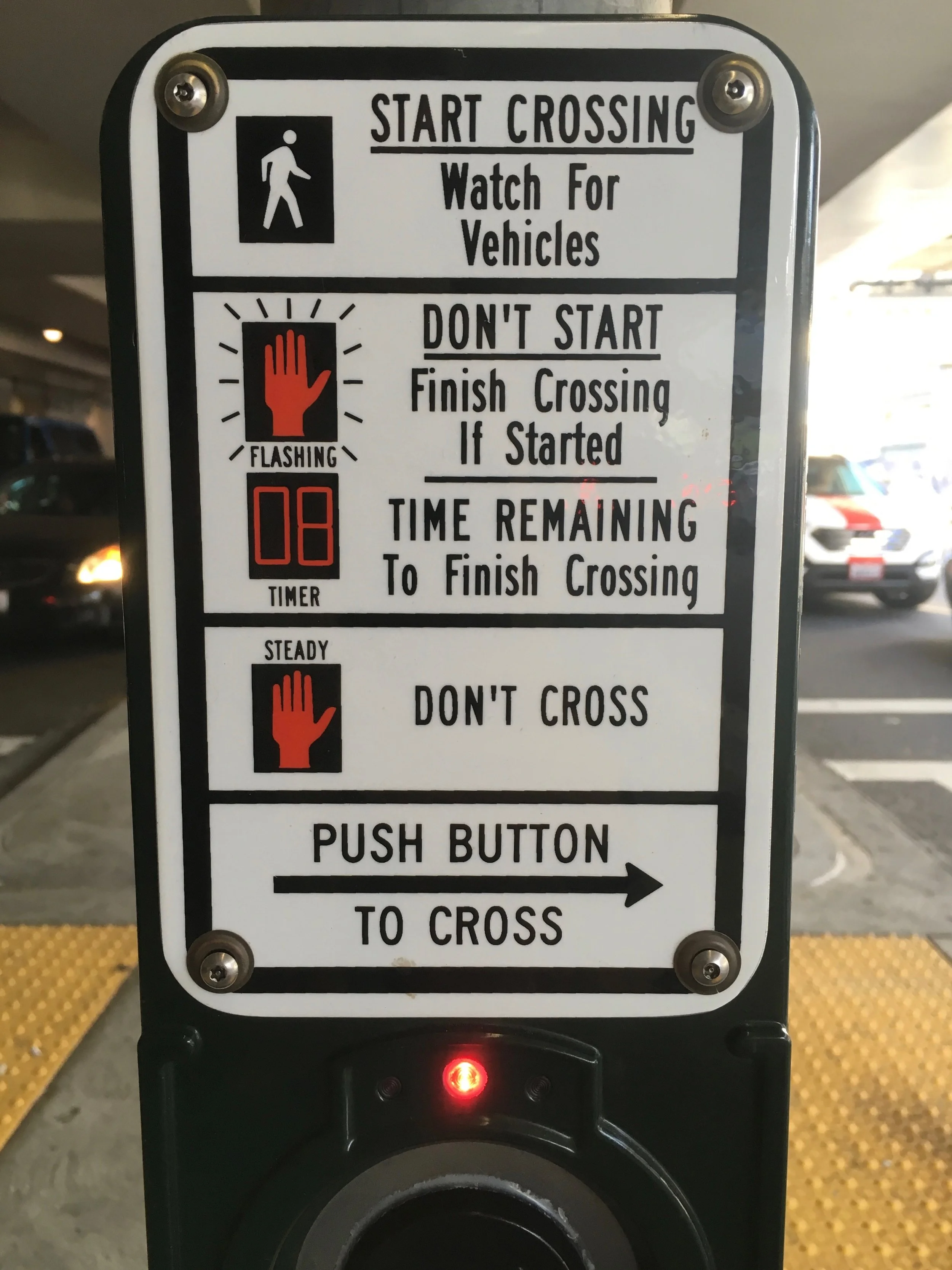 This lesson cost me $250 because I had no clue that you can get a ticket as a pedestrians stepping off the curb when the hand or number is flashing! This explanation as seen on the sign below I've only seen at the airport. I'm sure some cities are more forgiving than others but definitely don't do it L.A. downtown!